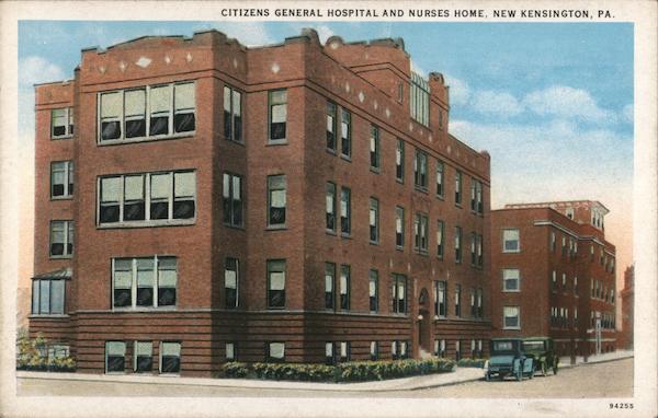 Front: CITIZENS GENERAL HOSPITAL AND NURSES HOME, NEW KENSINGTON, PA. 94255 Back: 3915 400 PUBLISHED BY I. ROBBINS & SON, PITTSBURGH, PA. C. T. AMERICAN ART COLORED on QUA RAS T. Prieto