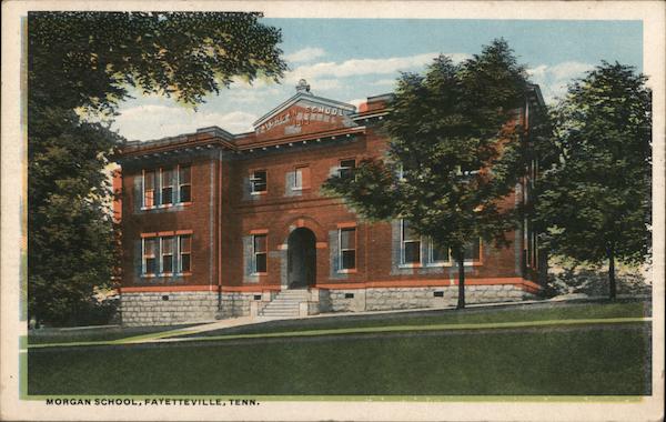 Front: SGHOOL MURGAN 1913 MORGAN SCHOOL, FAYETTEVILLE, TENN. Back: A-59288 Harring another po long drive today, Love from 18 TEN forre from us both Som C. T AMERICAN ART mrs. C. Farrabeant 86 Aley andu Are Upper monterai yang her Juracy Jersey. Von