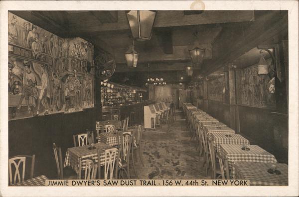 Front: JIMMIE DWYER'S SAW DUST TRAIL - 156 W. 44th St. NEW YORK Back: Jimmie Dwyer's Saw Dust Trail 156 W. 44th STREET, NEW YORK CONTINUOUS ENTERTAINMENT Four Little White Pianos It We'll Mail It LUMITONE PHOTOPRINT - NEW YORK - MADE IN U.S.A
