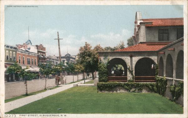 Front: COPR. DETROIT PUBLISHING CO. T.LOUS AAA 12273 FIRST STREET, ALBUQUERQUE, N. M. Back: AND CANADA. FOREIGN. TWO MADE ONLY BY DETROIT PUBLISHING CO. "PHOSTINT" CARD. TRADE MARK - REG. U. S. PAT. OFF. THIS SPACE MAY BE USED FOR MESSAGE.