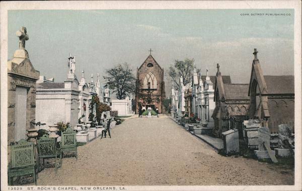 Front: COPR. DETROIT PUBLISHING CO. 13529 ST. ROCH'S CHAPEL, NEW ORLEANS, LA. Back: "PHOSTINT" POST CARD D OFF TRADE MARK - REG V S. PAT MADE ONLY BY DETROIT PURUSHING CO FOREIGN. TWO THIS SPACE MAY BE USED FOR MESSAGE.