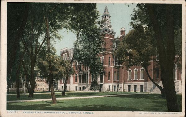 Front: 12287 KANSAS STATE NORMAL SCHOOL, EMPORIA, KANSAS. COPYRIGHT, 1908, EY DETROIT PUBLISHING CO Back: FOREIGN. TWO MADE ONLY BY DETROIT PUBLISHING CO. "PHOSTINT" CARD. THIS SPACE MAY BE USED FOR MESSAGE.