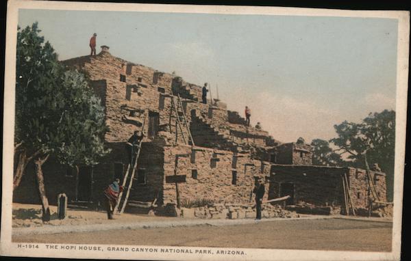 Front: H-1914 THE HOPI HOUSE, GRAND CANYON NATIONAL PARK, ARIZONA. Back: PREDI "PHOSTINT" ARVEY TRADE MARK REG. - U S. PAT OFF. MAOC ONLY BY DETROIT PUBLISHING CO 81663 THIS SPACE MAY BE USED FOR MESSAGE AXX