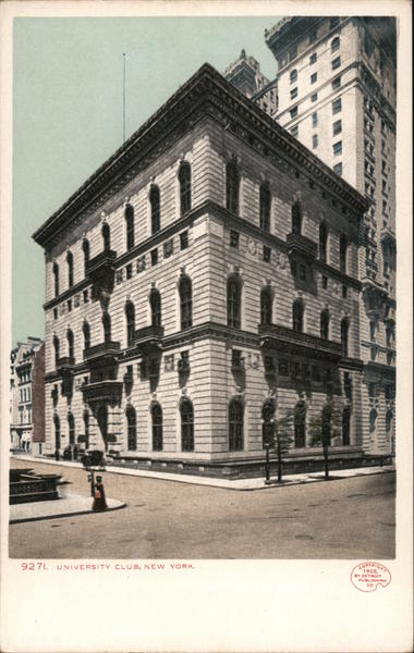 Front: COPYRIGHT 1905. BY DETROIT PUBLISHING CO. 9271. UNIVERSITY CLU B, NEW YORK. Back: and Canada, Foreign. Two Cents.