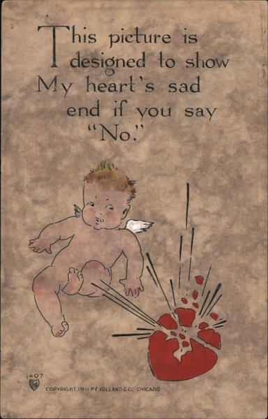 Front: 'his picture is designed to show My heart's sad end if "No." you say 1407 COPYRIGHT19 P.F.VOLLAND &CO CHICAGO Back: C0AHilal biaOFTWMO CO CHICCO