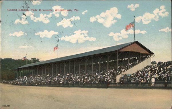 Front: Grand Ständ, Fair Grounds, Allentown, Pa. 11828 Back: 200 ENTO ON BE SEP 212 7 PM 1911 தம் Mrs. Be les Cuckermainelle Guess THIS SPACE MAY BE USED FOR MESSAGE