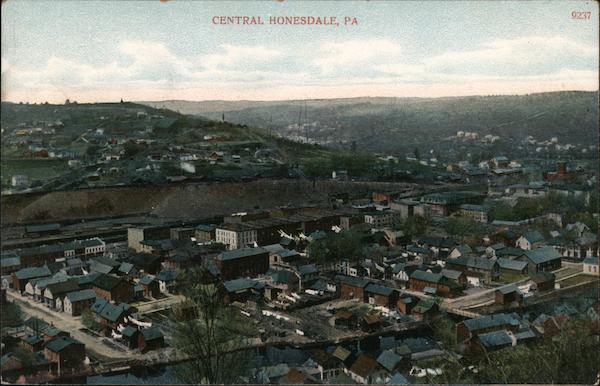 Front: 9237 CENTRAL HONESDALE, PA 11 Back: Post Card . One Cent for United States, and Island Possessions, Cuba, Canada and For Foreign. L. Hensel, Publisher, Hawley, Pa. Made in Germany,