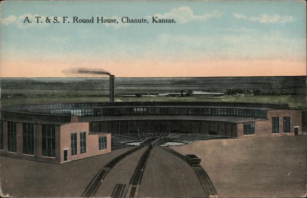 Front: A. T. & S. F. Round House, Chanute, Kansas. Back: *330 Со Pub, by S. H. Kress & Co. Plate 2593