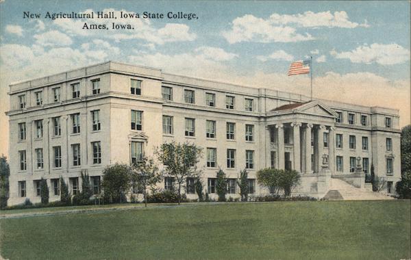 Front: New Agricultural Hall, Iowa State College, Ames, Iowa. Back: A-76588 PUBLISHED BY REYNOLDS & IVERSEN, AMES NEWS STAND, AMES, IOWA. CC.T. PHOTOCHROM gull