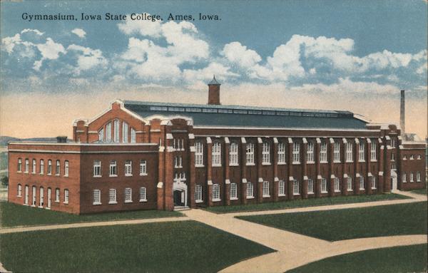 Front: Gymnasium, Iowa State College, Ames, Iowa. 1111 సర Back: A-76586 PUBLISHED BY REYNOLDS & IVERSEN, AMES NEWS STAND, AMES, IOWA. C.T. PHOTOCHROM. 1089 CA