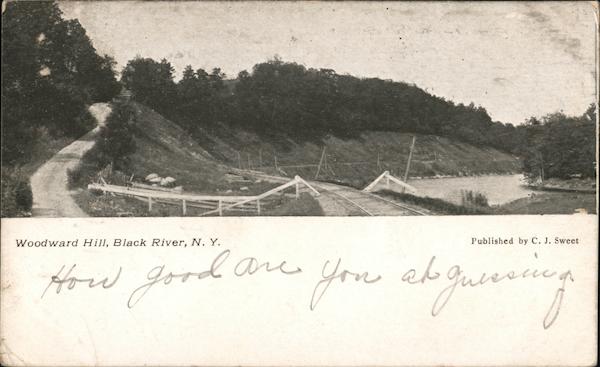 Front: Woodward Hill, Black River, N. Y. Published by C. J. Sweet How good are yoe eb gusrnea quering Back: СК UNTIEDSITES OF SARIGA TUS POST CARÐ 163 1706 FRANKLIN 1790 ONE CENT) H.H. I Ewrs. Carthage ور N.Y.