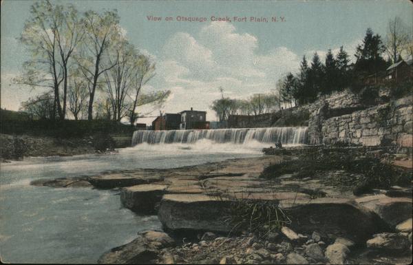 Front: View on Otsquago Creek, Fort Plain, N. Y. Back: HROMA N. LEIPZIG DRESDEN BERLIN Postago: United States and Island Possessions, Cuba, Canada and For all other Countries 18110 No. E 5122 Pub. by Diefendorf & Waters, Fort Plain, N. Y.