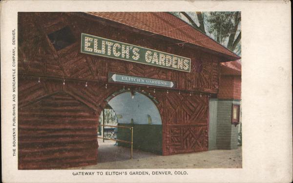 Front: ELICKS GARDERS ELITCH'S GARDENS. THE SOUVENIR PUBLISHING AND MERCANTILE COMPANY, DENVER. (a) GATEWAY TO ELITCH'S GARDEN, DENVER, COLO. Back: 3. Reith Canon Sellyoling Coh