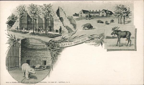Front: HIS BUFFALO PARK 200.. WILD & PCHELLAS, ENGRAVERS AND COLOR PRINTERS, 113 OAK ST., BUFFALO, N. Y. Back: Private Mailing Card. loo AUTHORIZED BY ACT OF CONGRESS - MAY 19.1898 OC (POSTAL CARD - CARTE POSTALE.) so