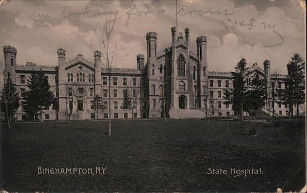 Front: look CAU a town yram ๊ฐ FFA ไป, TO BINGHAMPTON, N.Y. State Hospital. Back: AMTA UNITED CATES OF anca Vus PAINTE IN GERMANY 1706 FRANKLIN 1790 PUBLISHED FOR DEAN'S PHARMACY. Miss Hazel Spencer CORREA ?R F 5, 6 7 AM 1906 Corny a ูู