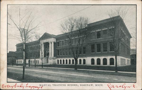 Front: al LELELTE mm Everybody happy MANUAL TRAINING SCHOOL, SAGINAW, MICH. parolyn E. Back: UNITED STATES OF 1545 1706 FRANKL IN 1790 JUN Af A AL 1907 Venue heiters Causndaigua niu.
