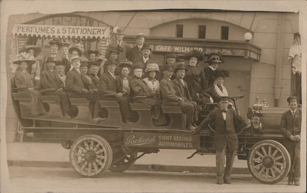 Front: PERFUMES &STATIONERY CAFE WILH nD 561 Packard, SIGHT SEEING AUTOMOBILES. Back: A 2 A 2 O 0 N) STOM ON A Z O mo Do
