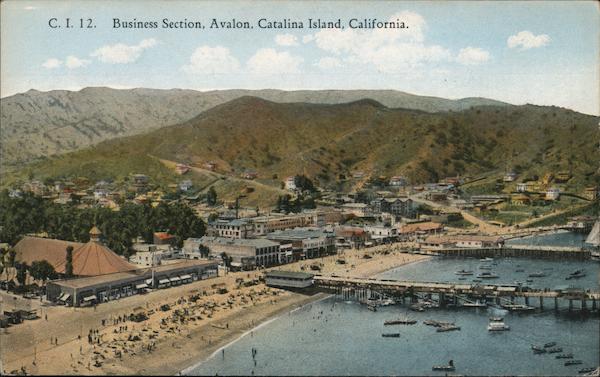 Front: C. I. 12. Business Section, Avalon, Catalina Island, California. LL Back: A-91795 29 39 AND ISLAND POSSESSIONS, CUBA, CANADA AND MEXICO PUBLISHED BY WESTERN PUBLISHING & NOVELTY CO., LOS ANGELES, CAL: 66eo, Sohmer Los Angeles
