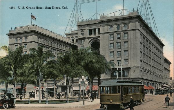 Front: 4254. U. S. Grant Hotel, San Diego, Cal. DIE Back: 58 que CALITUANIA: 15 EXPOS and Island Possessions Cuba, Canada and MADE IN U. S Á THE COMPLETION OF THE ON SAN CANAL DIEGO PUBLISHED BY ENO & MATTESON, SAN DIEGO CAL. A-32870