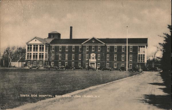 Front: 目目 目面EE 日_F 日 SOUTH SIDE HOSPITAL, BAY SHORE, LONG ISLAND, N.Y. Back: Suffolk 450 NATURAL VIEW MADE BY THE TOMLIN ART COMPANY, NORTHPORT, 'LONG ISLAND, N. Y.- GREETING TOMLIN CARDS