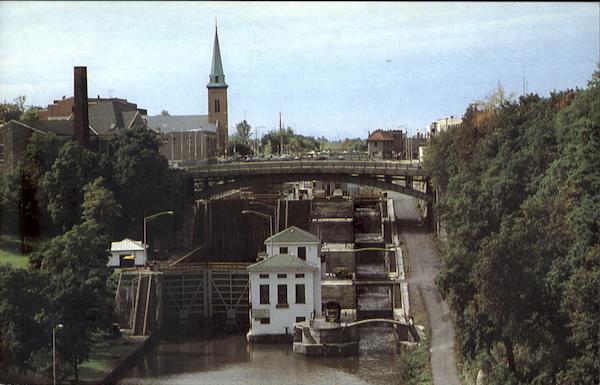View looking West at The Lockport Erie Canal Museum and The Famous Five Locks
