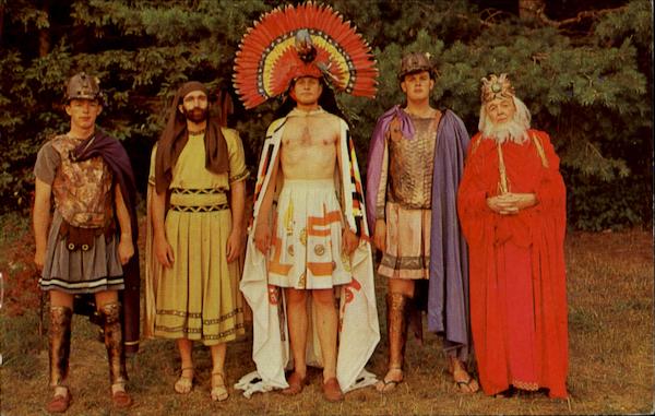 Characters shown telling the story of the Book of Mormon during the Annual Pageant performed each August at hill Cumorah, near Palmyra, New York.