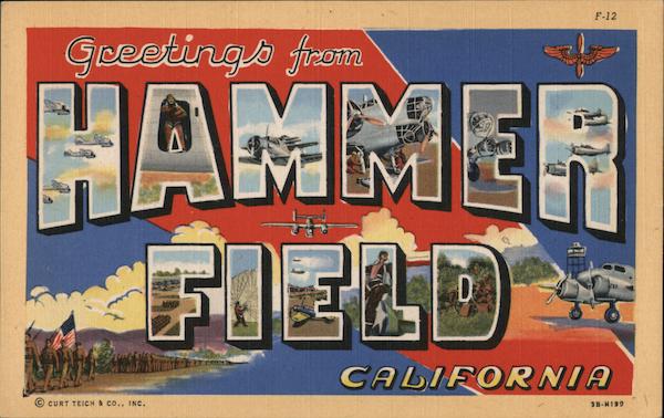 Front: F-12 Geetings firom HAMMER FIELD CALIFORNIA CURT TEICH & CO., INC. 3B-H199 Back: WESTERN PUBLISHING & NOVELTY CO., LOS ANGELES, CALIF. "C.T.ART.COLORTONE REG.U.S. PAT. OFF.