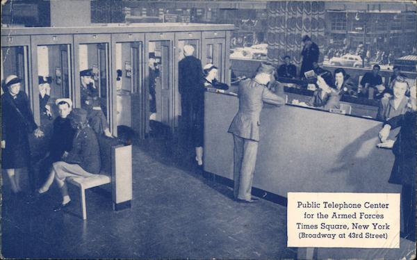 Front: Public Telephone Center for the Armed Forces Times Square, New York (Broadway at 43rd Street) Back: Name and Rank or Rating Service and address