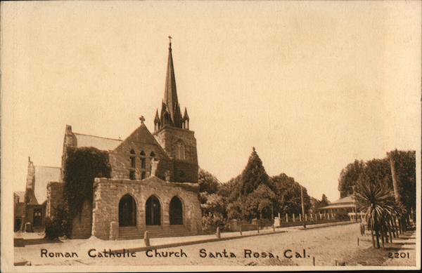 Front: Roman Catholic Church Santa Rosa, CalI. 2201 Back: PLACE - STAMP-HERE Ic 2. Pub. by Pacific Novelty Co. of S. F., Cal. Mado in S. F. 3-