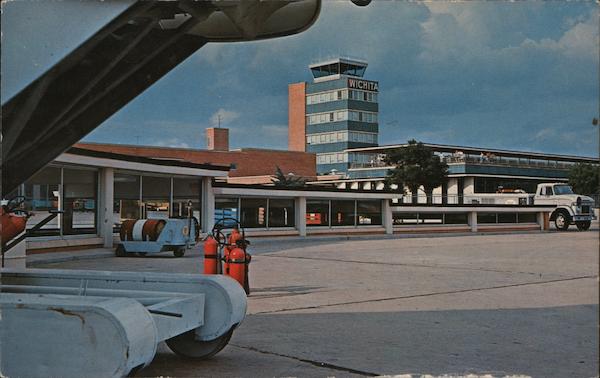 MUNICIPAL AIRPORT, Tetricolor Wichita, Kansas Exterior view of the beautiful terminal Building. Published by: James Tetirick 619 W 33rd K.C. 11, Mo. Photography by Fred Preisler 611136