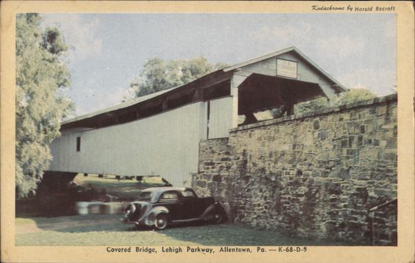 Front: Kodachrome by Harold Becraft Covered Bridge, Lehigh Parkway, Allentown, Pa.-K-68-D-9 Back: Published by E. H. Scholl Co., Inc., Allentown, Pa. Dextone Genuine Natural Color-Made only by Dexter Press, Pearl River, N. Y. 35348 2.75