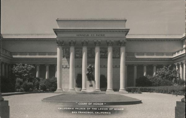 Front: HONNEUR ET PATRIE 11 COURT OF HONOR CALIFORNIA PALACE OF THE LEGION OF HONOR SAN FRANCISCO, CALIFORNIA Back: EM PHOTO BY GABRIEL MOULIN STUDIOS, SAN FRANCISCO
