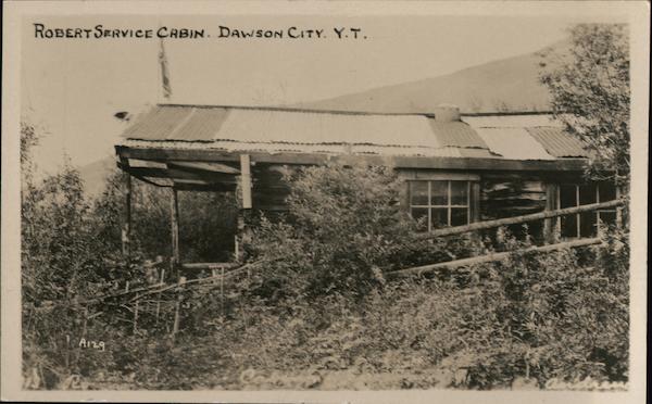 Front: ROBERT SERVICE CABIN. DAWSON CITY. Y.T. Back: SCENIC PHOTO PUBLISHING CO., INC., SEATTLE, WASH. COFRESTONDENCE stillnest me peace,