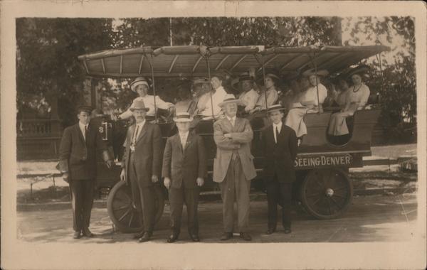 Front: 63 SEEING DENVER Back: SEEING DENVER AUTOMOBILES TOURING DENVER AUTOS SEEING THE FOOTHILLS AUTOS MT. MORRISON BY AUTO 336 17th ST., DENVER. Ар А р м о А M STAMP M 7 р м от