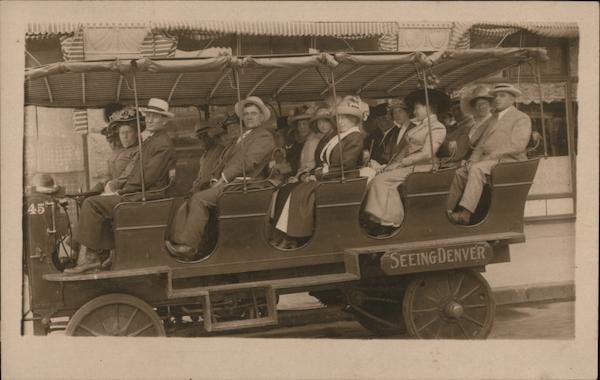 Front: 45 SEEINGDENVER EGO Back: SEEING DENVER AUTOMOBILES TOURING DENVER AUTOS SEEING THE FOOTHILLS AUTOS MT. MORRISON BY AUTO SEEING DENVER CO. 336--17th ST.. DFNVER NOKO PL NCO