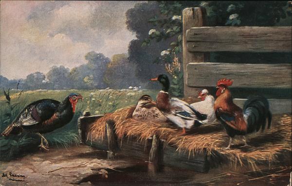 Turkey, Ducks, & Chickens in Barnyard