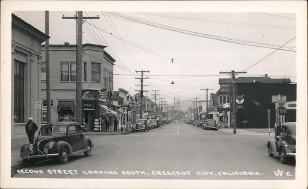 Fexall ORUGS ERICIDAIR NO U PARKING I HOUR STA ERY REXALL CAFE SNOOKER BAY <MAR MA STOP LMS GERB ANERS KET re KODA 4S TION U725 J76 AO SECOND STREET LOOKING SOUTH, CRESCENT C A 6. CITY, CALIFORNIA.