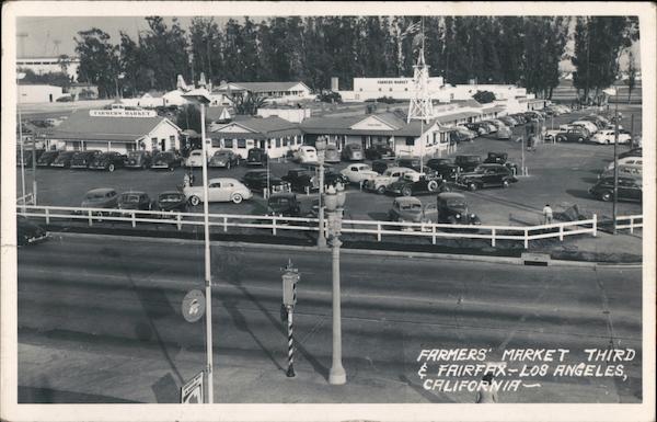 Front: FARMERS MARKET FARMERS MARKET REMRS WARE S FAMFAX AVE Mmnc Maxe SERVICE CREATEST NEE IN HISTORY! FARMERS MARKET THIRD € FAIRFFX-L08 ANGELES, CALIFORNIA~ Back: Le PUBLISHED BY FRASHERS, INC., POMONA, CALIF. 3- Asis