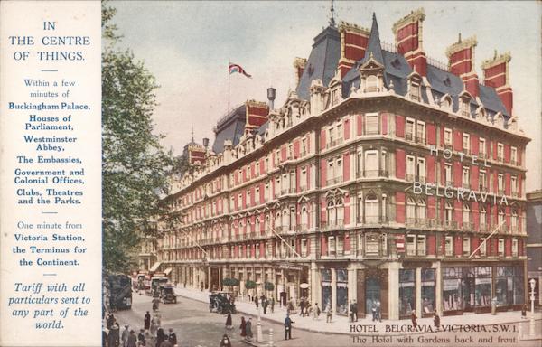 In the centre of things. Within a few minutes of Buckingham Palace, Houses of Parliament, Westminster Abbey, The Embassies, Government and Colonial Offices, Clubs, Theatres and the Parks. One minute from Victoria Station, the terminus for the Continent. |