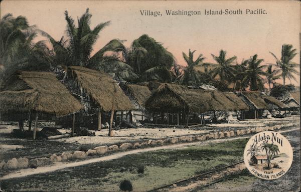 Front: Village, Washington Island-South Pacific. Aloha Nui HAWAIIAN ISLANDS FROM Back: No. 173 Hawaii & South Seas Curio Co., Honolulu. Made in Germany. 11571 This space may be used for correspondence. Place