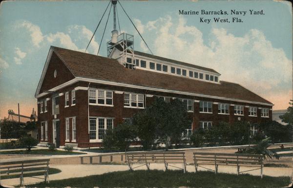 Front: LIIA Marine Barracks, Navy Yard, Key West, Fla. 1.8 ALI Back: Too CAGO A-40875 C.T. PHOTOCHROM mus POSTA THIS SPACE FOR ADDRESS ONLY.