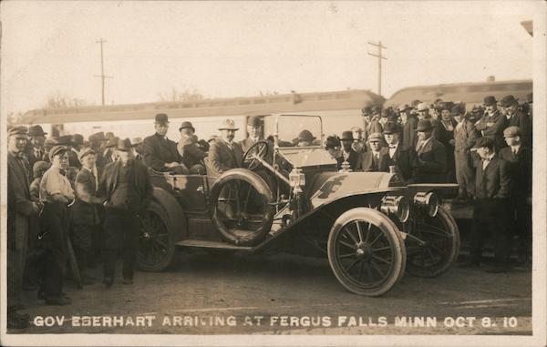 Front: 11 GOV ESERHART ARRICING AT FERGUS FALLS MINN OCT 8. 10 Back: 6000 ◄ NO 4 AZOA HERE O A AZO A NAME AND ADDRESS HERE