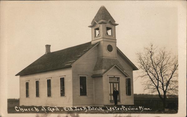 Front: |||| Church of God. Ela. Jas A. Patrick. Lester Prairie, Minn FORWARD FAN M Back: Lester Prairie. From Mrs & Mr. Peter Schmitz 1911. Minn. 5/22 2500 Mr Albert Bandines Carver. Minn R. F. D. no 1.