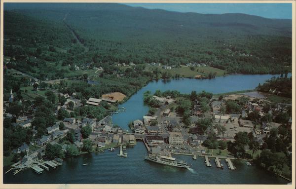 Air view of Wolfeboro, New Hampshire, famous summer resort on Lake Winnipesaukee. NC904 D-Color Photo: Loran Percy Published by Bromley & Company, Inc., Boston, Mass. 02210- AR MIKE ROBERTS COLOR PRODUCTIONS OAKLAND 94623 C16886 U.S.A.