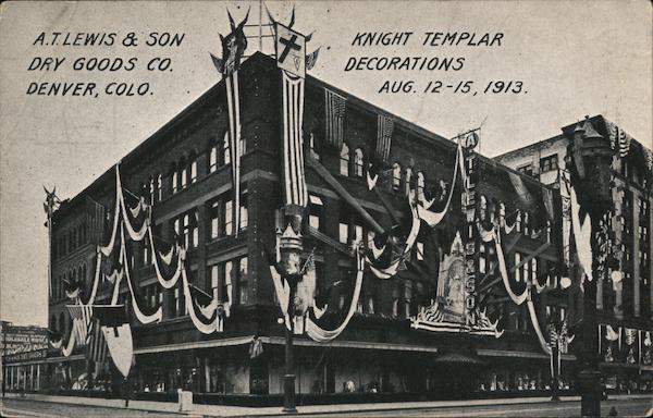 Front: A.T.LEWIS & SON DRY GOODS CO. DENVER, COLO. 64 885626 FIOLESALE WOWI hacsak. 11 Fl KNIGHT TEMPLAR DECORATIONS AUG. 12-15, 1913. Back: Colorado Selling Company, Denver, Colo. 600 8/ د/