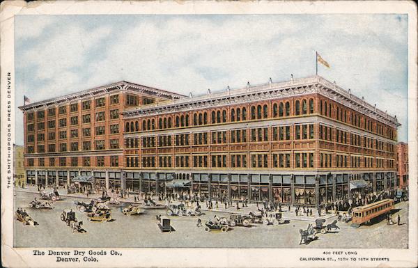 Front: THE SMITH-BROOKS PRESS DENVER HEE The Denver Dry Goods Co., Denver, Colo. DEIL EL 400 FEET LONG CALIFORNIA ST., 15TH TO 16TH STREETS Back: AFTER MARCH 1, 1907 THIS SPACE CAN BE USED FOR A WRITTEN MESSAGE, USING ONE-CENT STAMP -80