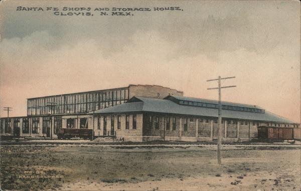 Front: SANTA FE SHOPS AND STORAGE HOUSE, CLOVIS, N. MEX. No 86 HAND-COLOR M Back: Published by Fred. Harvey Fromm aunt bizzie DOMESTIC, 1 CENT. FOREIGN, 2 CENTS. William Denham