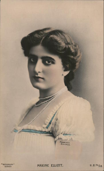 Front: "ROTOGRAPH" MORRISON. CHICAGO. MAXINE ELLIOTT. H.B.14/28 Back: Love from Ada. The Rotograph Co. New York (Germany). 6-PM 1910 Mr. and Mrs. Chos. Hanson, R.F. D. no. 90. Falconers N.Y. "Box 42. U.S.POSTAGE