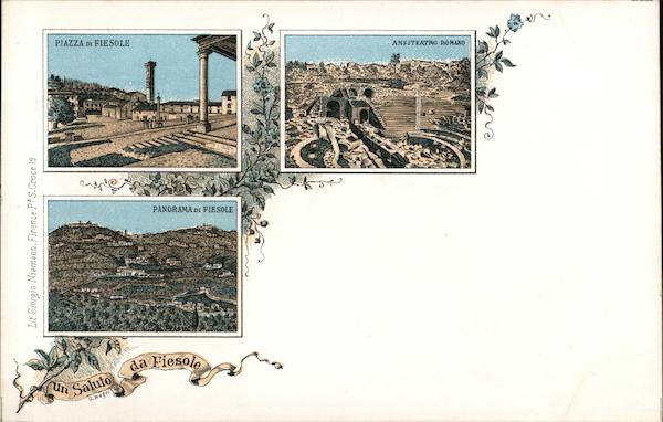 Lit.Giorgio Niemann. Firenze P S.Croce 19 PIAZZA DI FIESOLE cond HEA Un Saluto tato C.Magri PANORAMA DI FIESOLE PATRY WAN da Fiesole 10 engel ANFITEATRO ROMANO
