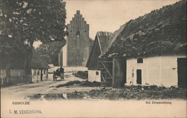 Front: ROSKILDE. 19 L. M. LEISENRING, Set Jørgensbjerg. Back: BREVKORT BREFKORT - POSTKARTE CARTE POSTALE - CARTOLINA POSTALE Peter Alstrup, Kbhvn 1802 NASTY